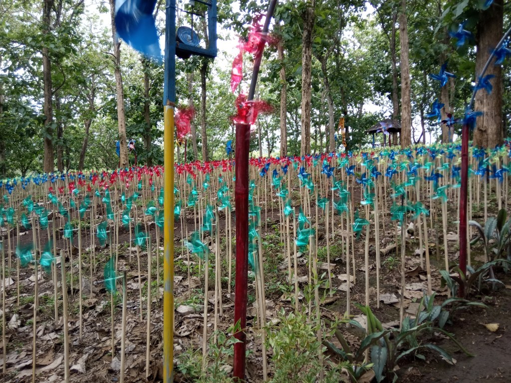 Kami memiliki pemandangan indah berupa kincir angin dengan berbagai warna.